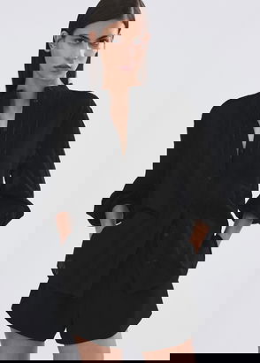 Collarless Cropped Blazer, Black