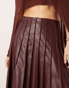 Pleated Faux Leather Maxi Skirt In Burgundy