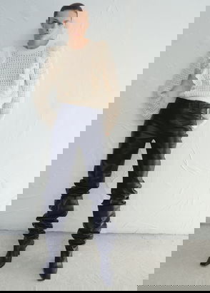 Canela Knitted Trouser Co-ord In Oatmeal