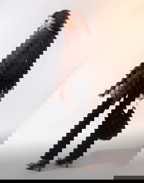 Faux Fur Longline Coat With Exaggerated Collar In Beige