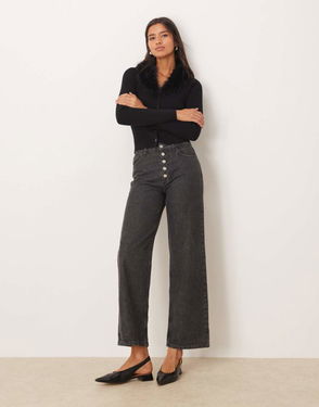 Faux Fur Cropped Jacket With Collar Detail In Brown