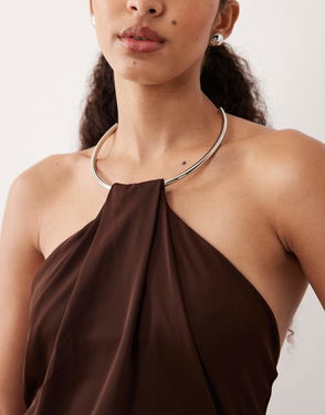 Slinky Maxi Dress With Twist Shoulder And Hardware Detail In Navy