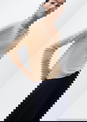 Venus Side Ruffle Flared Sleeve Top, Brown