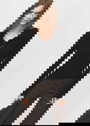 Ruched Detail Long Sleeve Jumpsuit In Black