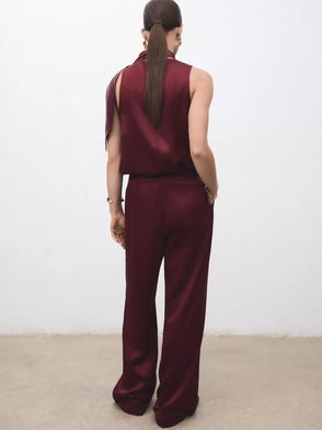 Brick Satin Wide Leg Trousers, Rust/Copper