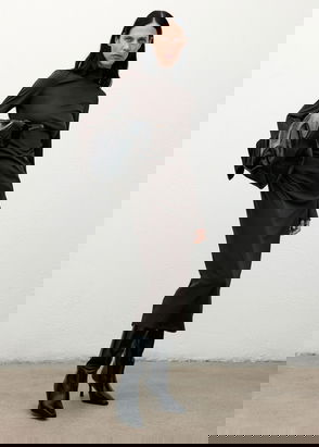 Cotton And Wool Mix Knitted Polo Mini Dress In Charcoal