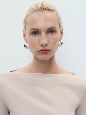 Lilobar Long Sleeve Slash Neck Top, Pastel Brown