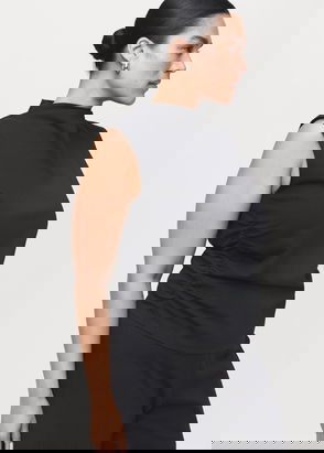 Peplum Hem Short Sleeve Knitted Top In Beige
