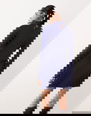 High Neck Satin Long Sleeve Ruched Side Mini Dress In Electric Blue