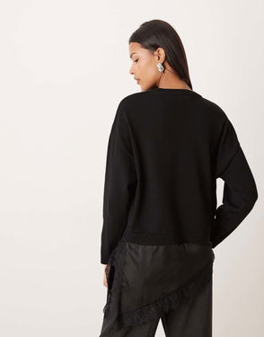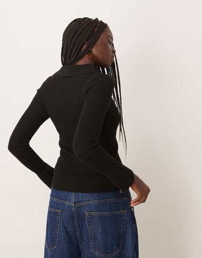 100% Cotton High Neck Long Sleeve T-shirt In Black