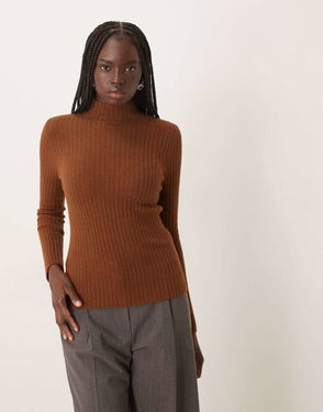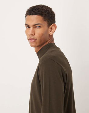 100% Cotton High Neck Long Sleeve T-shirt In Brown