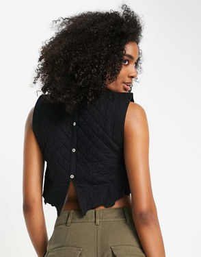 Button Back Quilted Crop Vest With Embossed Flower Detail