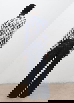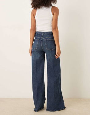 Elise Cotton Mix Pleat Front Wide Leg Jean In Dark Blue