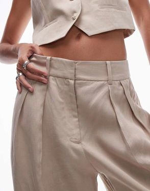Mix Slouchy Longline Tailored Trouser Co-ord In Light Beige