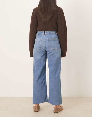 Catherin Cotton Mix Frayed Hem Straight Jean In Mid Blue