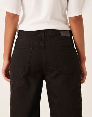 Sandra 100% Cotton Wide Leg Jean With Seam Detail In Black Wash