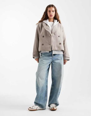 Wool Mix Double Breasted Tailored Jacket In Brown