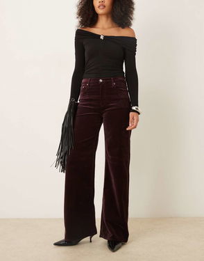 Siracusa Cotton Rich Velvet Wide Leg Jean In Burgundy