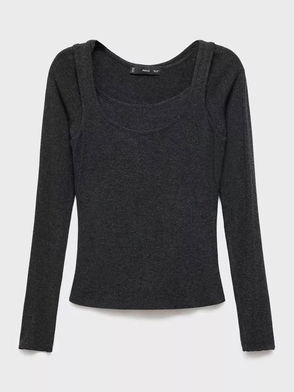 Belle Layered Fine Knit Top, Dark Grey