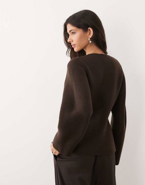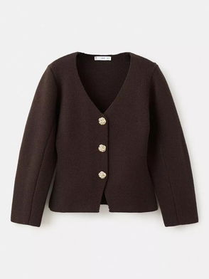 Compact Knitted Jacket With Gold Buttons In Chocolate