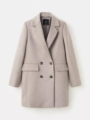 Funnel Collar Double Breasted Wool Blend Overcoat, Vanilla