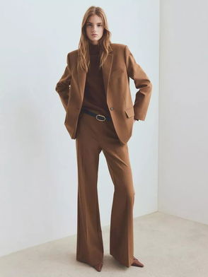 Funnel Neck Oversized Wool Blend Jacket, Camel