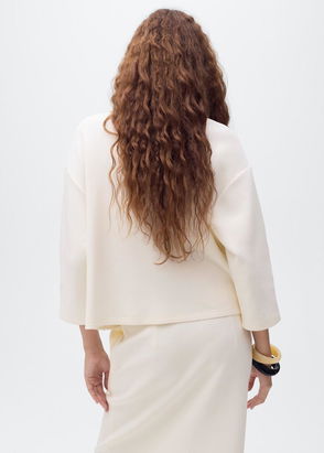 Cotton Mix Compact Knit Cardigan With Gold Buttons In Cream