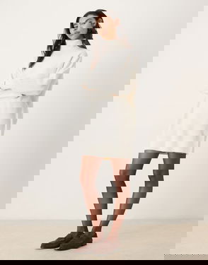 Wool Mix Roll Neck Knitted Mini Dress In Cream