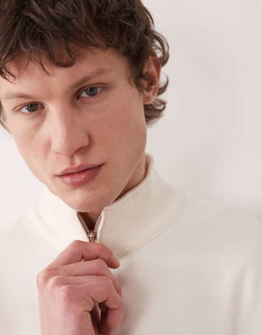 100% Cotton Quarter Zip Sweatshirt In Ecru