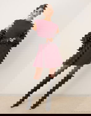 Structured High Neck Sleeveless Mini Dress With Peplum Hem In Black