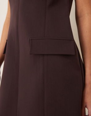 Structured High Neck Sleeveless Tailored Mini Dress In Brown