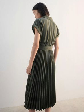 Esther Pleated Midi Dress, Khaki