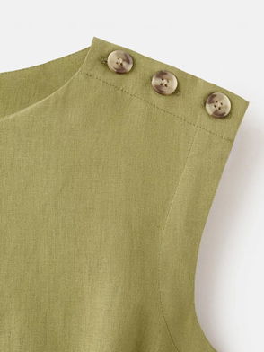 Gin Button Shoulder Linen Rich Dress, Dark Green