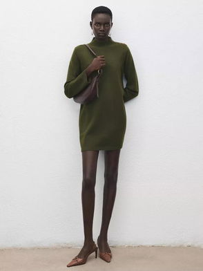 Turtleneck Waist Detail Maxi Dress, Khaki