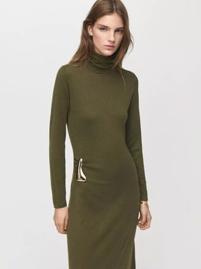 Turtleneck Waist Detail Maxi Dress, Khaki