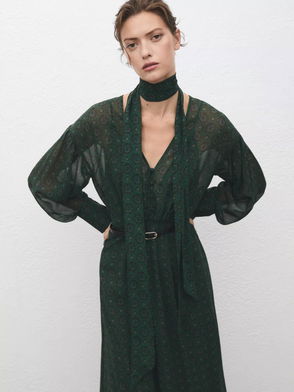 Tie Detail Lace Insert Satin Midi Dress In Green
