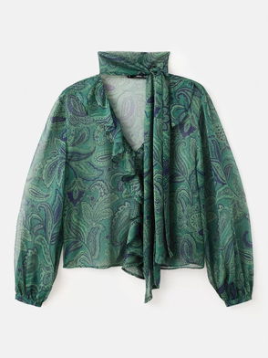Kids' Pure Cotton Long Sleeve Floral Blouse, Green