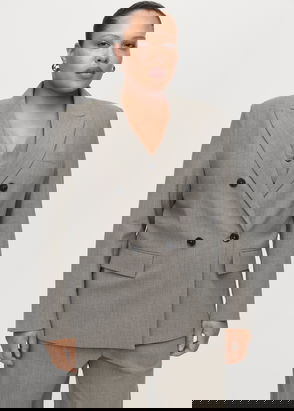 Brushed Wool Touch Blazer Co-ord In Grey Pinstripe