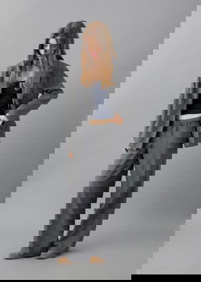 Oversized Pinstripe Blazer In Grey