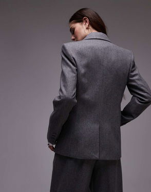 Oversized Brushed Tailored Blazer In Grey Check