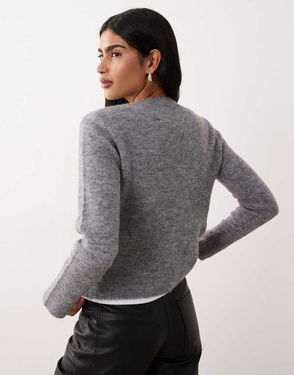 Wool Mix Tie Neck Short Sleeve Cardigan In Grey