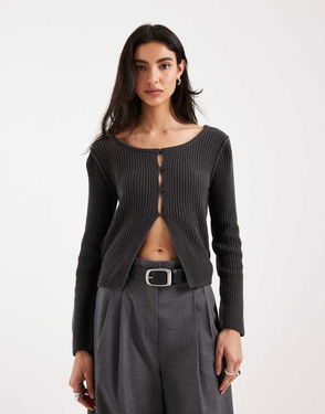 Knitted Top Shrug In Charcoal