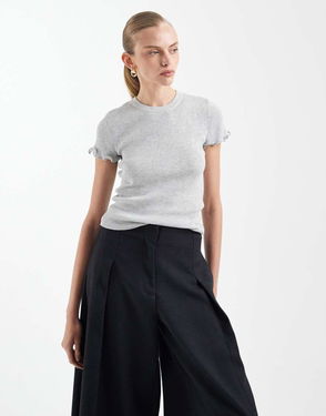Teen Knitted T-shirt With Frill Sleeve In Light Grey