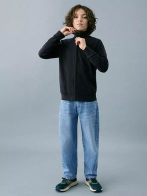 Kids' High Neck Zipped Cardigan, Anthracite