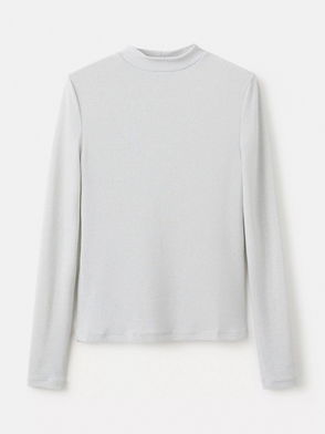 Roll Neck Knitted Top With Flare Sleeves In Grey