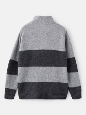 Kids' Harry Cotton Zip Neck Sweater, Medium Grey