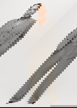 Brushed Wool Touch Trouser Co-ord In Grey Pinstripe
