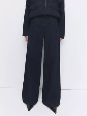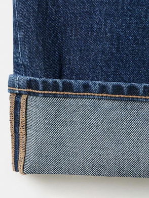 High Rise Wide Leg Cuffed Jeans, Dark Blue