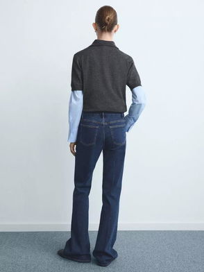 Mid Rise Flared Wide Leg Jeans, Dark Dirty Blue