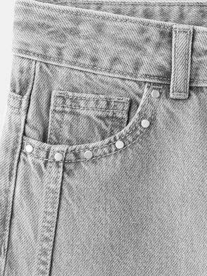 Kids' Stud Pocket Wide Leg Jeans, Grey